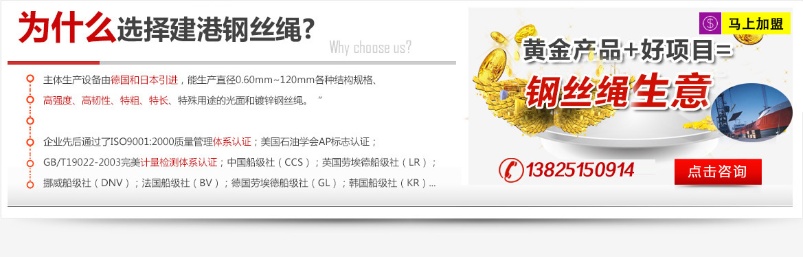建港鋼絲繩加盟是3年前開(kāi)始做的,選擇與建港鋼絲繩合作很簡(jiǎn)單,當(dāng)時(shí)我想再找一個(gè)鋼絲繩品牌,通過(guò)朋友介紹